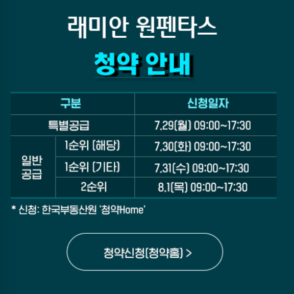 ✅ 금일은 1순위 해당지역(서울) 이 청약 진행중이고, 7월 31일 1순위(기타), 그리고 8월 1일 2순위 청약 예정입니다.